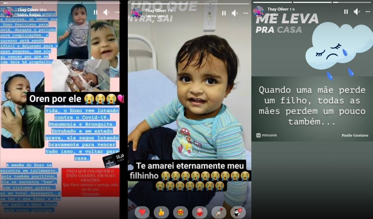 Enzo Gabriel, de 11 meses, de acordo com o pai, Hernando Santos Neves, estava intubado há quatro dias na UMMI. Antes, porém, ficou internado no Hospital de Vereda por cerca de 24 horas.