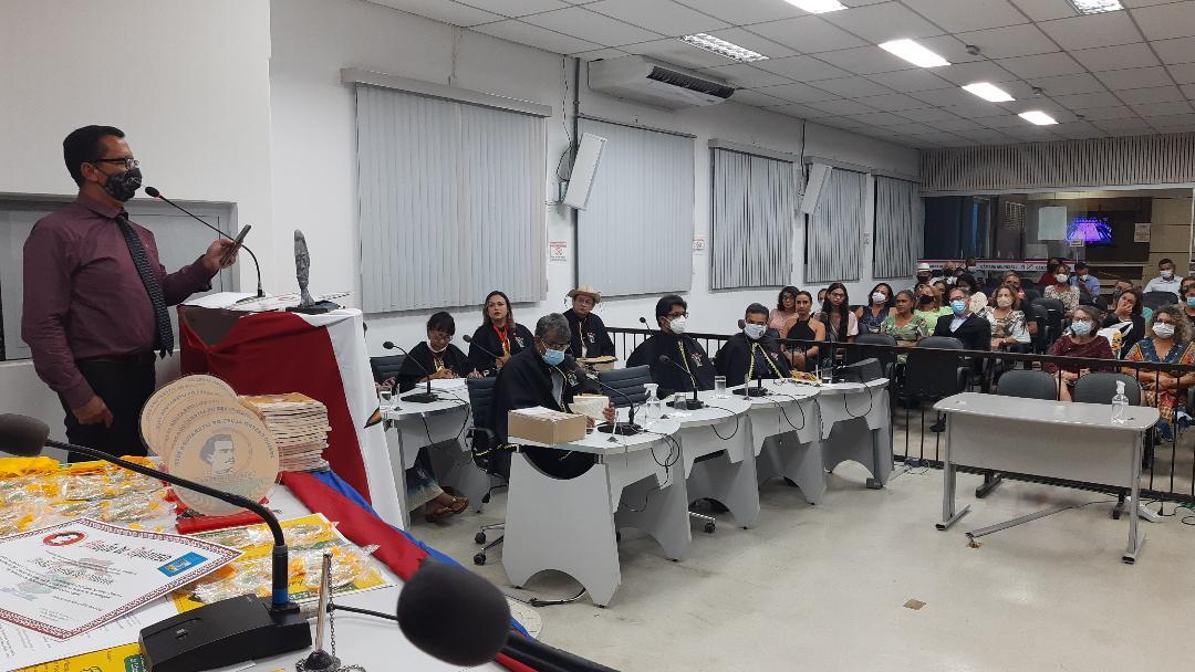Como estava viajando, Edelvânio foi representado pelo irmão Edelvácio Pinheiro. “’O Cachorro cor de caramelo que vivia nas ruas de Jaguaré’ é uma fábula baseada em uma história real que aconteceu no Dia das Crianças, no ano de 2021, nesta cidade que fica no norte do Espírito Santo, bem perto aqui de nós”, discursou Edelvácio Pinheiro.