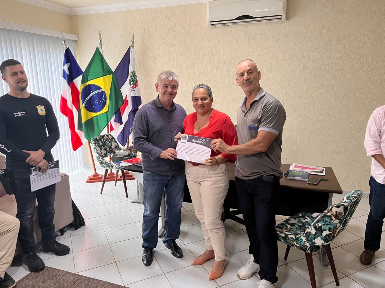 Na ocasião, o prefeito ainda entregou Moções de Aplausos homenageando funcionárias da Secretaria de Desenvolvimento Econômico – SEDEC, sendo elas a agente da Sala do Empreendedor, Adelaide Salomão, pelo trabalho que desenvolve na abertura de empresas, em apenas quatro horas - o que a tornou referência no extremo Sul da Bahia - e a agente do CrediBahia, Marina Almeida, por alcançar o valor de R$ 3.500.000,00 (três milhões e quinhentos mil reais) de investimentos em empréstimos aos MEI, micro, pequenos e grandes empresários, com empréstimos à juros baixos pelo DesemBahia.