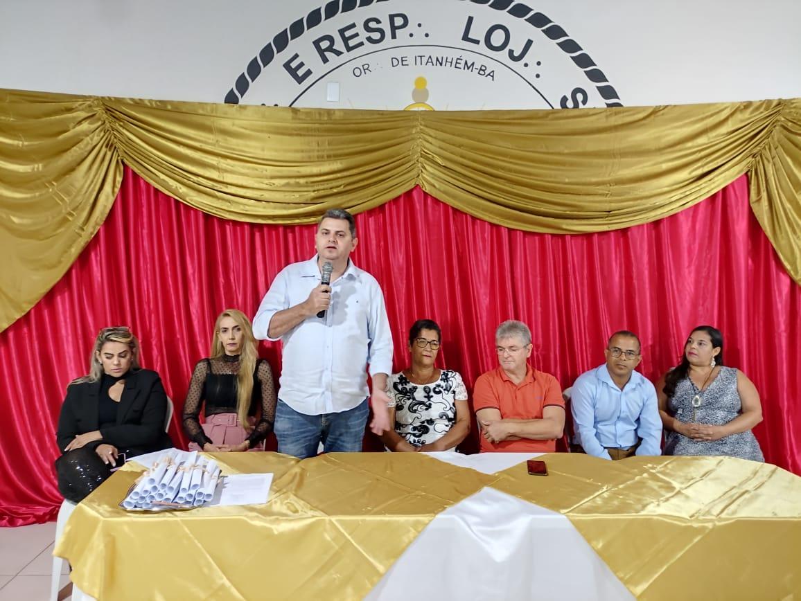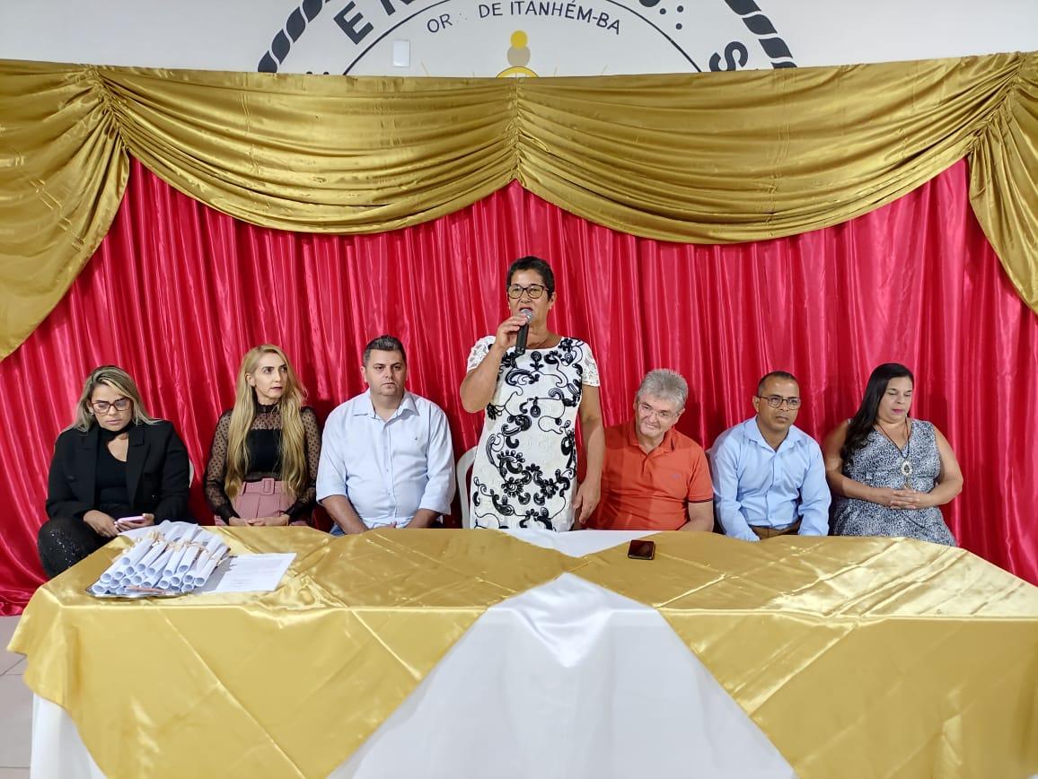 A prefeitura de Itanhém, por meio da Secretaria Municipal da Educação, realizou nessa quarta-feira (14), no auditório da Loja Maçônica Padre Roma, a Cerimônia de Posse dos Diretores e Vice-Diretores Escolares, para a gestão 2023/2025. No evento, foram empossados 17 novos diretores, que foram escolhidos através do voto, por alunos, pais e responsáveis por alunos.
