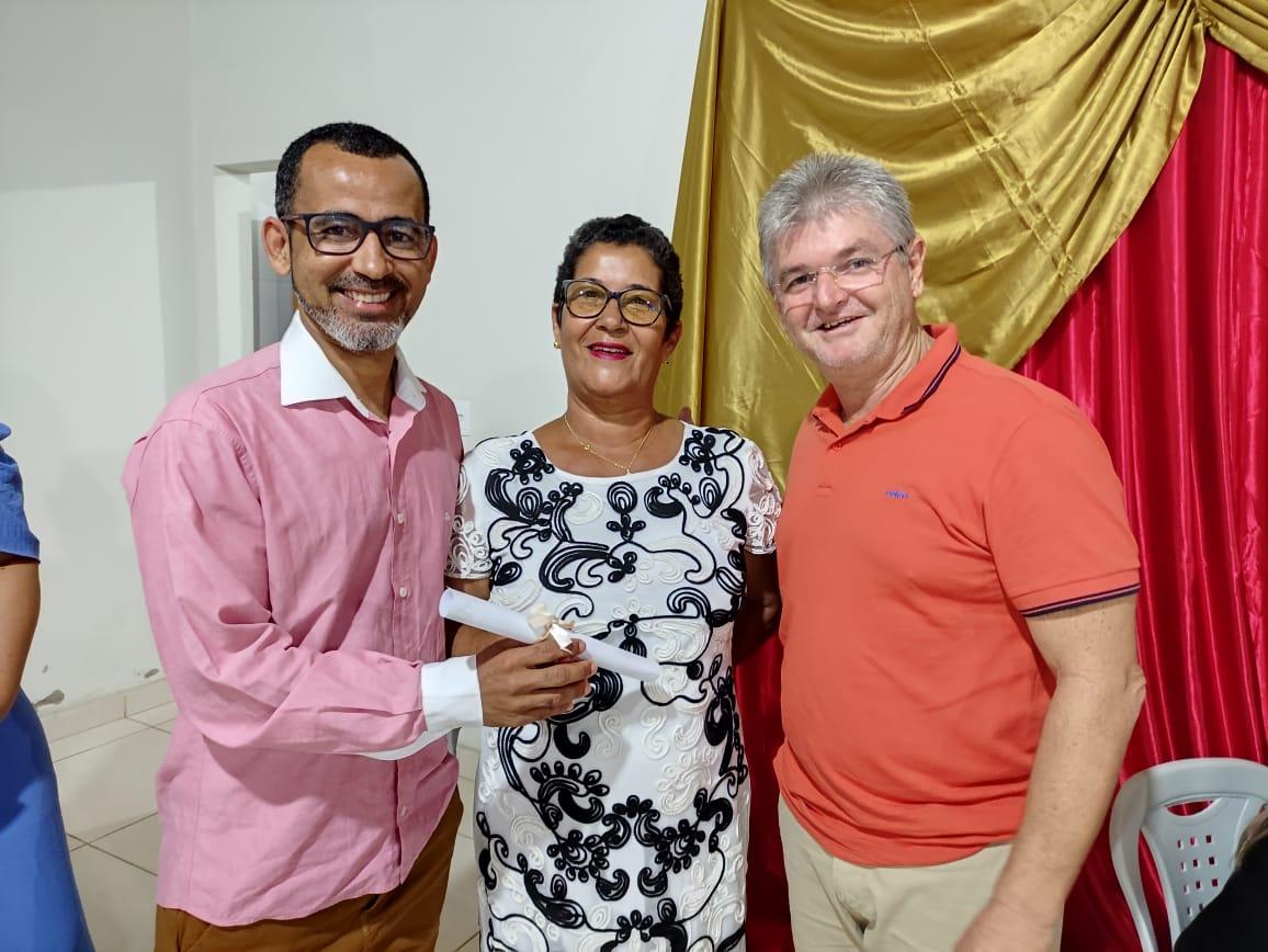 Evento iniciou com oração, conduzida pela professora Valéria Gomes, e momento musical com Alexandre Costa. A secretária Normélia fez uma homenagem aos diretores que estão encerrando o mandato. O evento foi encerrado com churrasco e show com Vinícius Lima.