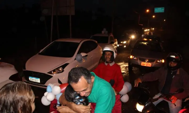 O pastor não sabia que seria recebido desta forma depois de retornar de Salvador onde faz tratamento. Apenas o filho dele, que era o motorista, sabia da homenagem.