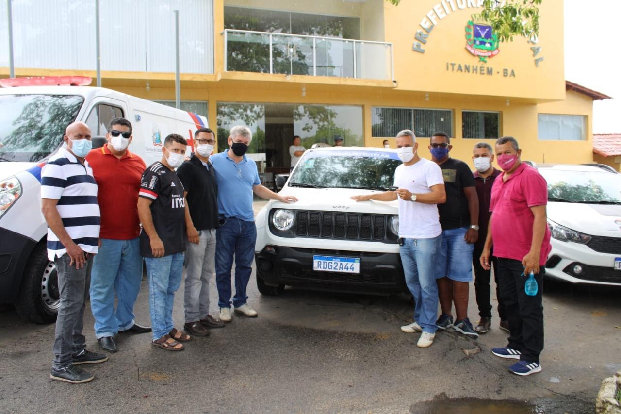 O prefeito Mildson Medeiros (PSD), na manhã deste sábado, 22 de janeiro, em frente ao prédio da prefeitura, entregou veículos e máquinas, que atenderão demandas das secretarias. São cinco veículos, sendo um Fiat Argo para uso da Secretaria do Desenvolvimento Social, uma ambulância Renault Master, suporte avançado, que será mais um reforço na Secretaria de Saúde, dois tratores - um Solis-75 e um New Holland TT4.75, para a Secretaria de Agricultura, para dar suporte às famílias da Agricultura Familiar, e um Jeep Renegade, destinado ao Conselho Tutelar.
