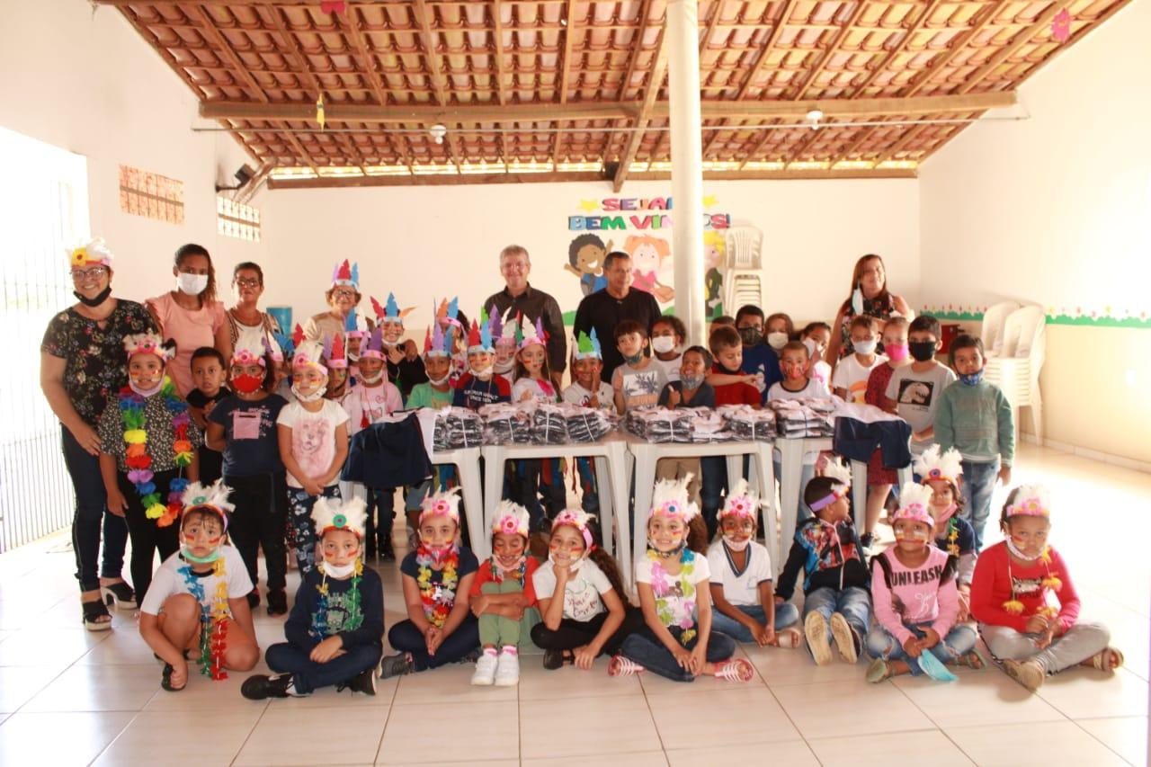 A Prefeitura de Itanhém, gestão 2021/2024, por meio da Secretaria Municipal de Educação, iniciou a distribuição dos uniformes escolares para os estudantes da Rede Municipal de Ensino. O Prefeito Mildson Medeiros esteve, durante esta terça-feira (19), Dia do Índio, junto com a secretária da Educação Normélia Alquilina, e do vereador Rivelino, fez questão de visitar as escolas da sede para fazer a entrega dos uniformes.