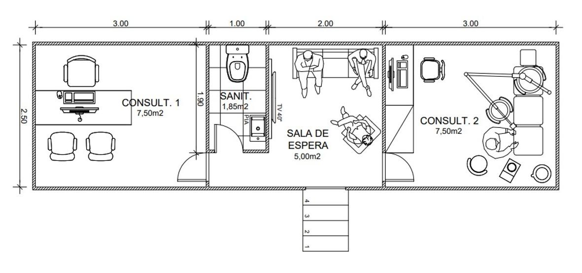O consultório do dentista, com 7,5 m², é equipado com cadeira odontológica, equipamentos periféricos, infraestrutura para esterilização dos instrumentos utilizados pelos profissionais.