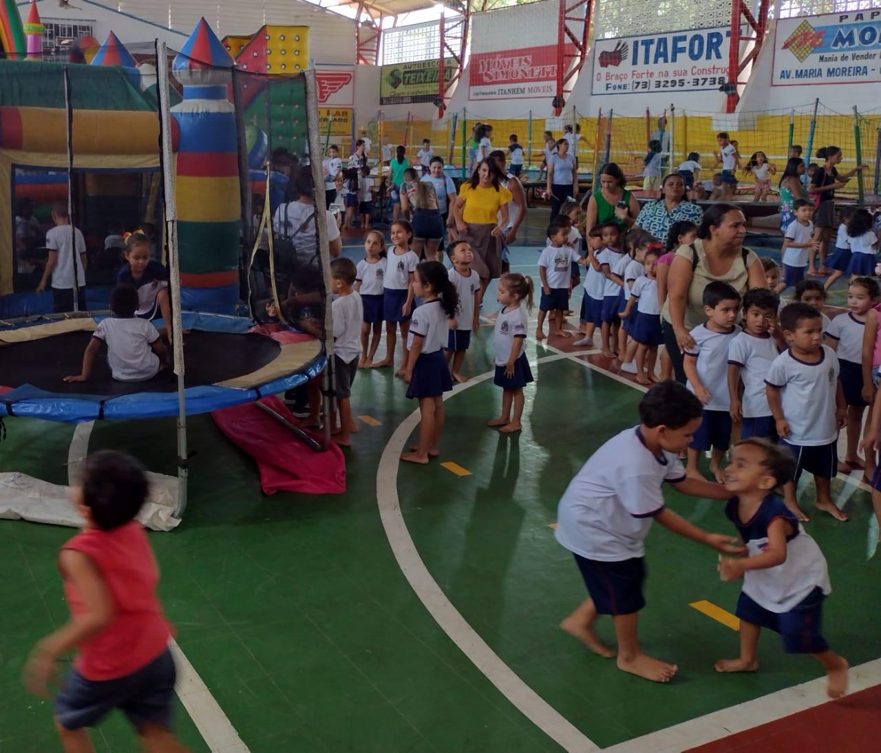 A criançada se divertiu nos brinquedos infláveis, pula-pula e se deliciaram com algodão-doce, cachorro-quente, picolé, refrigerante e pirulitos à vontade.
